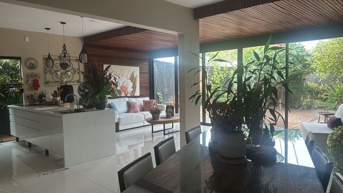 Ao adentrar a residência, você é recebido por duas salas amplas, integradas e com excelente iluminação natural, que proporcionam uma sensação imediata de conforto e acolhimento. Os espaços foram cuidadosamente pensados para oferecer fluidez entre estar, jantar e convivência, tornando a casa ideal tanto para momentos íntimos quanto para receber amigos e familiares com muito estilo.