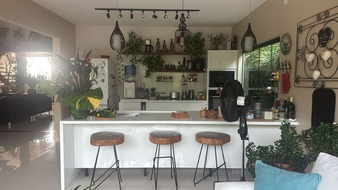A cozinha, dividida de forma inteligente em dois ambientes, é ampla, bem ventilada e recebe iluminação natural durante todo o dia. É um espaço funcional e convidativo, ideal para quem valoriza praticidade sem abrir mão do design. Seja para o preparo de refeições do cotidiano ou para eventos especiais, ela está pronta para atender com excelência.