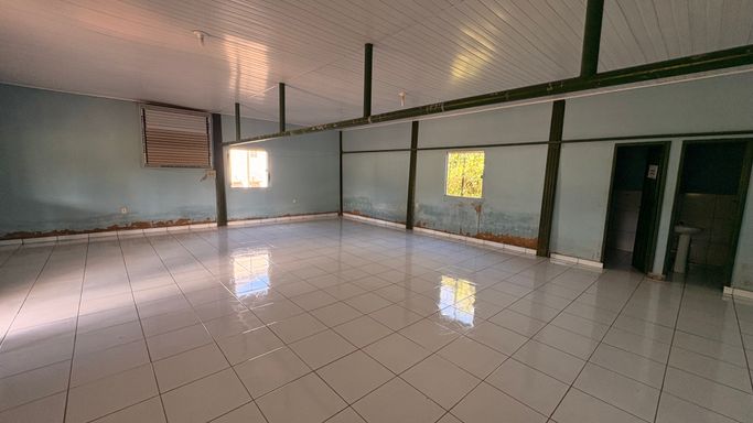 Amplo salão para eventos, com grande espaço para confraternizações