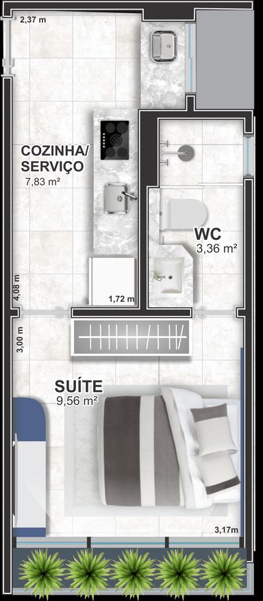 Nossos apartamentos estúdios variam entre 28 m², 33 m² e 43 m², oferecendo opções ideais para atender diferentes estilos de vida.