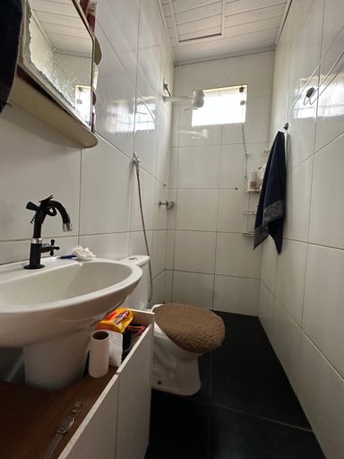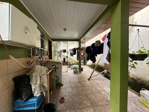 área de serviço, coberta com telha cerâmica, piso com cerâmica, esquadrias em madeira e alumínio