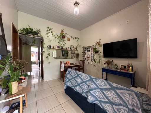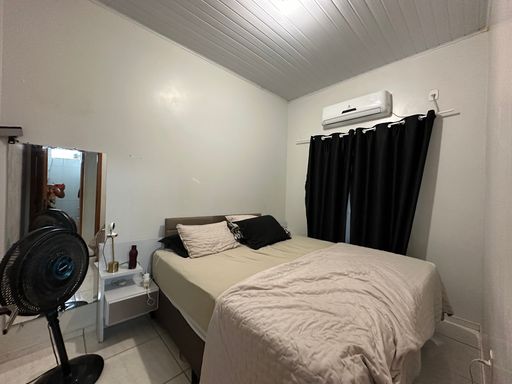 coberta para veículo leve de porte médio, sala de estar, 02 (dois) quartos, banheiro social, cozinha e